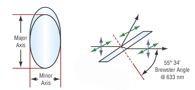 Brewster window is uncoated substrate used in an optical system at Brewster Angle. It is used to separate the S polarization from the P polarization. Placed at Brewster's Angle the P-Polarization portion of the light will pass through the window 100%, while the S Polarization portion will be 20% reflected. MT-Optics,Inc. offer brewster window made from BK7 and UV Fuses Silica.